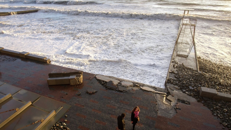 Жители Левого берега вразгар непогоды заметили даже снежинки. Буквально минуту снеба летели мелкие снежные хлопья.