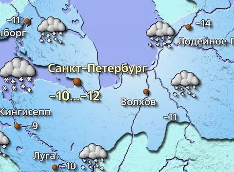 Погода в Санкт-Петербурге на 14 января В Санкт-Петербурге облачно, небольшой снег. Температура воздуха −10…−13°, в Ленинградской области −9…−14°. Ветер южной четверти 4–9 м/с. Атмосферное давление будет […]