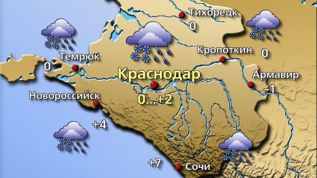 Погода в Краснодаре 12 января Сегодня по территории Кубани будет перемещаться холодный атмосферный фронт. Сопровождаемый грядой мощных облаков, он станет причиной дождей, переходящих в мокрый снег, […]